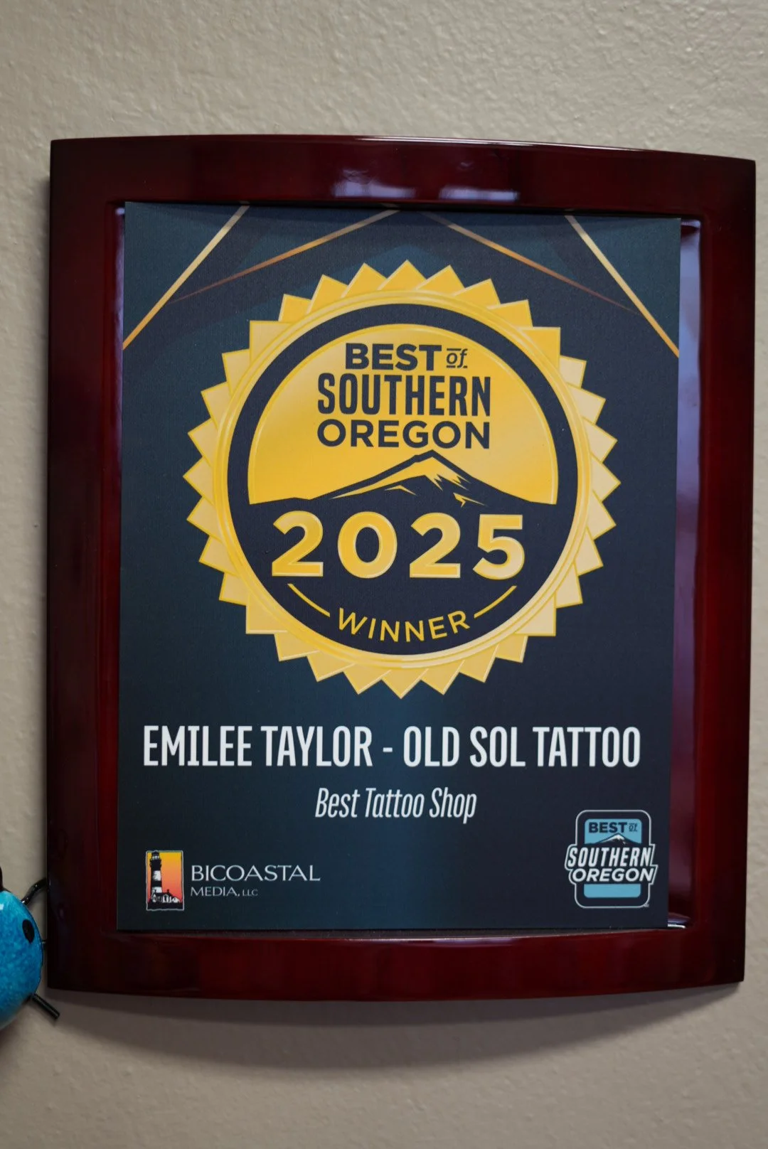 Old Sol Tattoo is a private studio owned and operated by yours truly, Emilee Taylor. I started the studio so that I could provide my clients with a comfortable and calm place to get tattooed. Tattoos are a big deal, and I want my clients to feel safe and valued when they’re trusting me with their bodies. I have been slinging cayute tattoos since 2021. I got my start in tattooing after years of painting, running an online art merchandise store, and working with digital design. The studio was established in 2022, and is located in an old historic building, right in the heart of downtown Medford,Oregon. In 2023 I received the peoples choice award for ‘best tattoo artist’ by the Rogue Valley Times. In 2025 I received ‘best tattoo artist’ by both the southern Oregon magazine and rogue valley times ✨